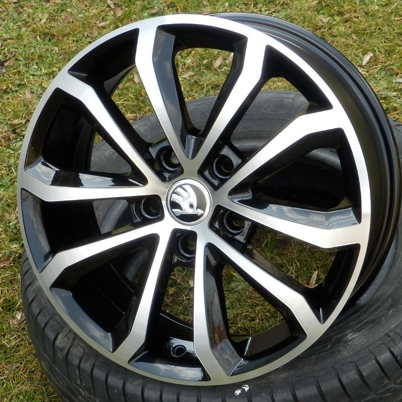 Efektní a lité disky v černo-leštěném provedení. (loga Škoda, VW, SEAT, AUDI lze dodat za 100,-Kč/ks - není součástí kol - dodáváno s krytkou bez loga).