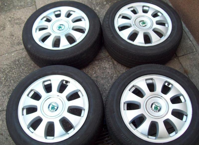 Použitá originální alu kola ŠKODA vhodná pro vozy ŠKODA OCTAVIA, ROOMSTER, případně i Fabia. Kola jsou použitá s místy horším lakem. Kola mají zcela nové nepoužité středové pokličky. Sada je aktuálně nově obutá a vyvážená.