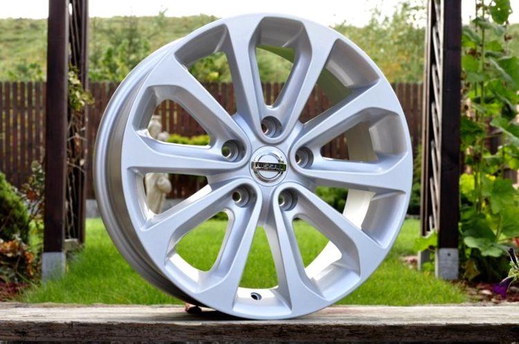 Efektní lité disky ve stříbrném provedení. Foto s logem Nissan pouze ilustrační-dodáváno s logy výrobce. (loga Nissan možno dodat za příplatek 100,- Kč/ks).