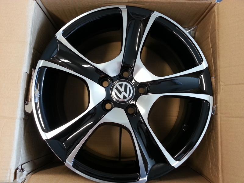 Efektní masivní lité disky pro vozy VW, SEAT, ŠKODA, AUDI, TOYOTY, Chrysler apod. v provedení černého lakování + leštěné plochy. (foto s logy Škoda/VW/AUDI pouze ilustrační, dodáváno s logy výrobce)