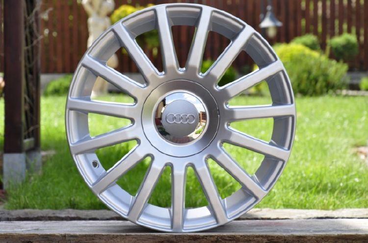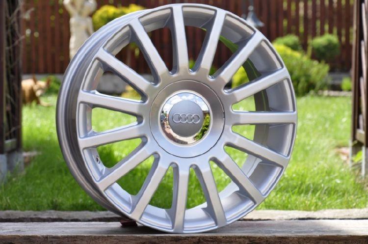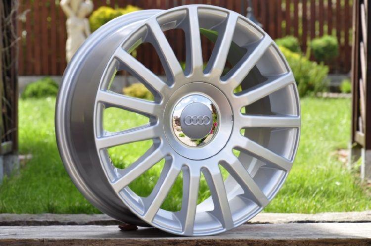 Efektní, lité disky v provedení "stříbrné lakování" pro vozy VW, AUDI, ŠKODA, SEAT, FORD, MERCEDES apod. (foto s logem AUDI pouze ilustrační - dodáváno s logy výrobce !). Dvojitá rozteč 5x100 + 5x112.