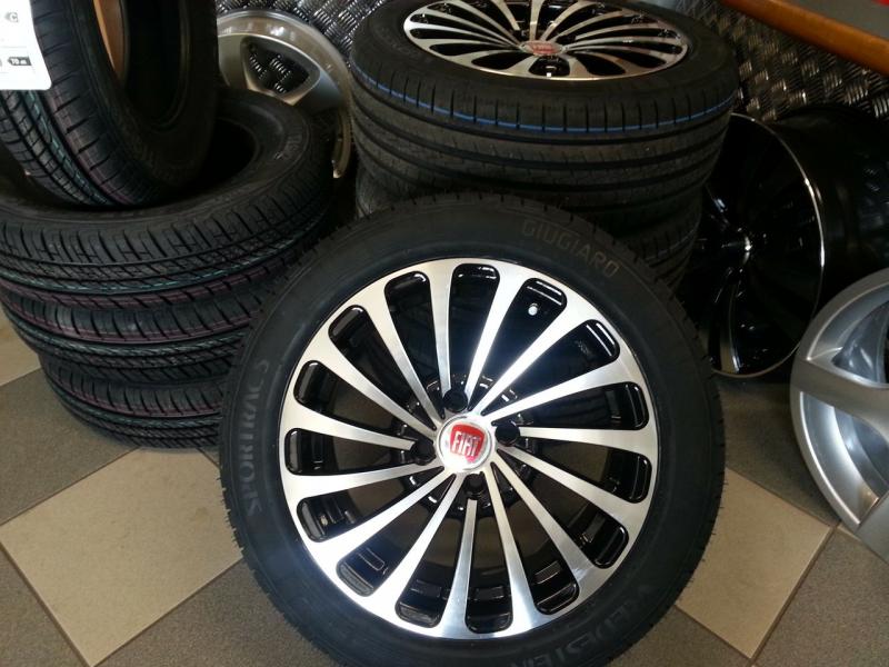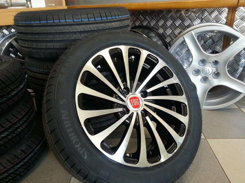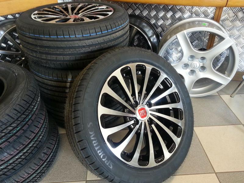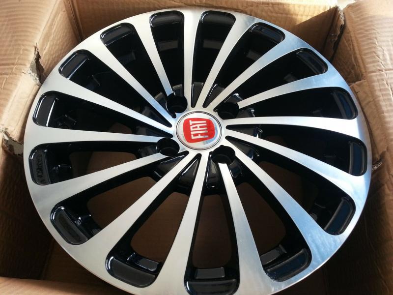 Efektní lité disky v provedení černo-leštěného lakování. (foto s logem FIAT,VW a obute disky pouze ilustrační. Loga ani pneu nejsou součastí kol ! Disky jsou samozřejmě zcela nové bez pneu)