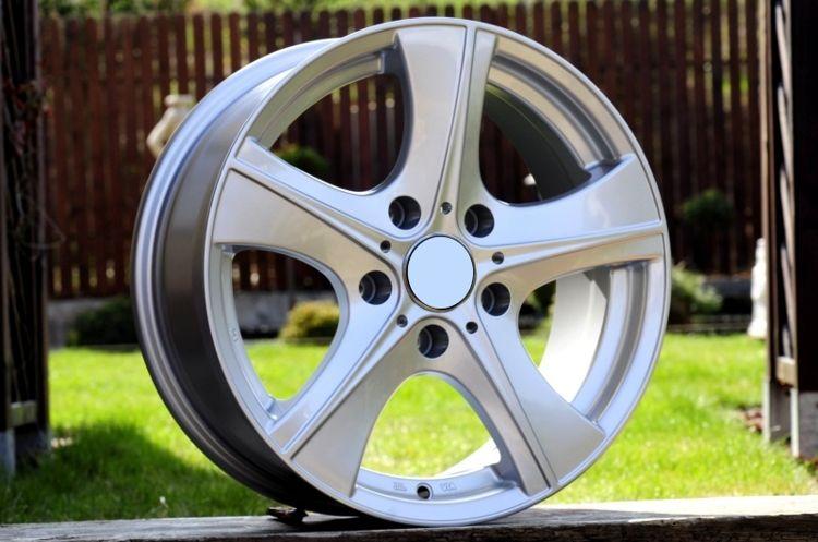Kvalitní lité disky efektního designu ve stříbrném provedení např. pro vozy BMW E36 E46 E90 X1, VW T5, Opel insignia apod. (Loga BMW nejsou v ceně-dodáváno s logy výrobce, loga BMW pouze ilustrační. Pasují loga originál BMW - loga BMW možno dodat zvlášť za 500,- Kč/sada)