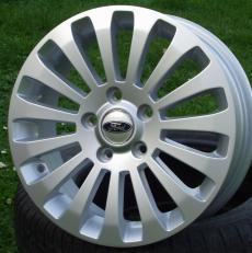 Velmi efektní lité disky nejen pro vozy FORD ve stříbrném lakování. (Foto s logy Ford pouze ilustrační-není součástí kol, dodáváno se stříbrným středem. Loga Ford možno dodat zvlášť za 100,- Kč/ks)