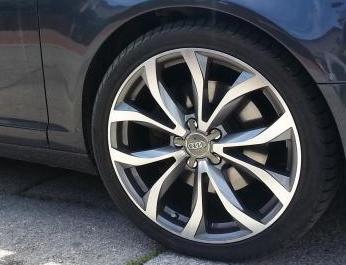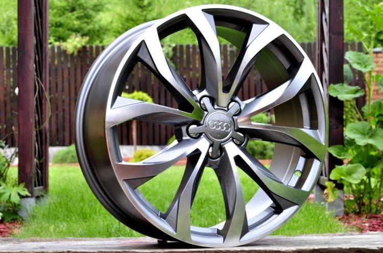 Kvalitní, efektní lité disky nejen pro koncernové vozy v provedení antracit+leštěné. Foto s logy Audi pouze ilustrační, dodáváno s poklickou bez loga. (logo AUDI možno dodat zvlášť za 150,- Kč/ks). Foto na voze je reálné námi obuté sady-ale zároveň pouze ilustrační, jedná se samozřejmě o zcela nové disky.. Do vyprodání možno na objednání dodat i v 7,5x18 et35 a et43 a v 8x18 et40 a et35