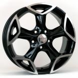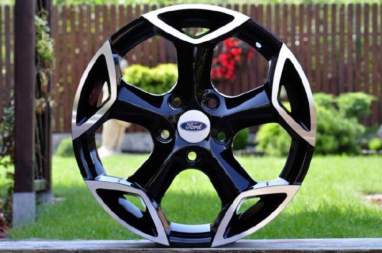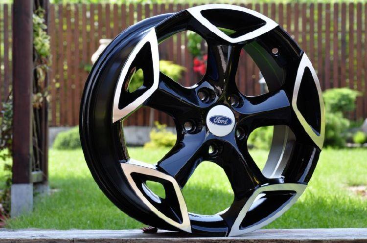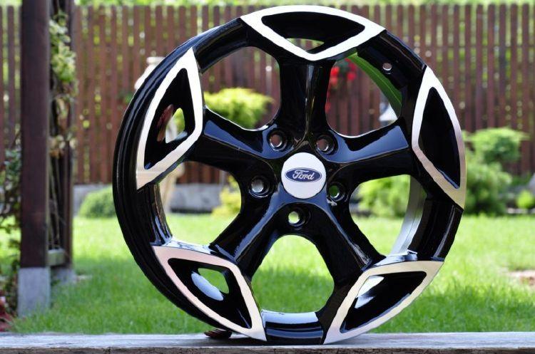 Efektní lité disky nejen pro vozy FORD v černo-leštěném provedení. (Logo Ford pouze ilustrační-není součástí kol ! Dodáváno se stříbrným středem. Loga Ford možno dodat zvlášť za 100,- Kč/ks). Do vyprodání lze dodat i s ET50-52-52,5