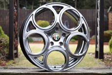 Efektní lité disky nejen pro vozy ALFA ROMEO, FIAT apod. (foto s logy Alfa pouze ilustrační-není součástí kol !!). Loga Alfa lze dodat zvlášť za 100,- Kč/ks. Provedení kol je "kovový lesk"