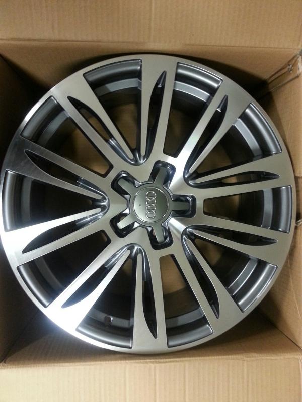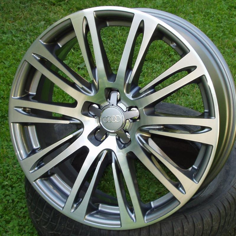 Efektní lité disky v provedení "šedá metalíza+leštěné paprsky" pro vozy AUDI, VW, SEAT, ŠKODA, Ford apod. (foto s logy AUDI pouze ilustrační - není součástí kol ! Loga Audi možno dodat zvlášť za 100,- Kč/ks).