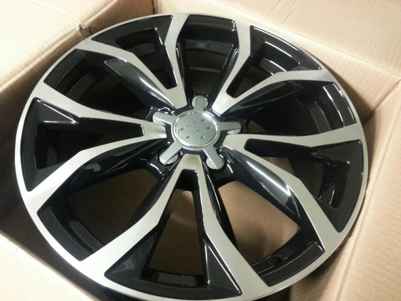 Efektní černoleštěné lité disky pro vozy AUDI VW SEAT ŠKODA Mercedes apod. Foto s logy Audi pouze ilustrační - není součástí kol ! (loga/krytky Audi/VW možno dodat zvlášť za 100,- Kč/ks).