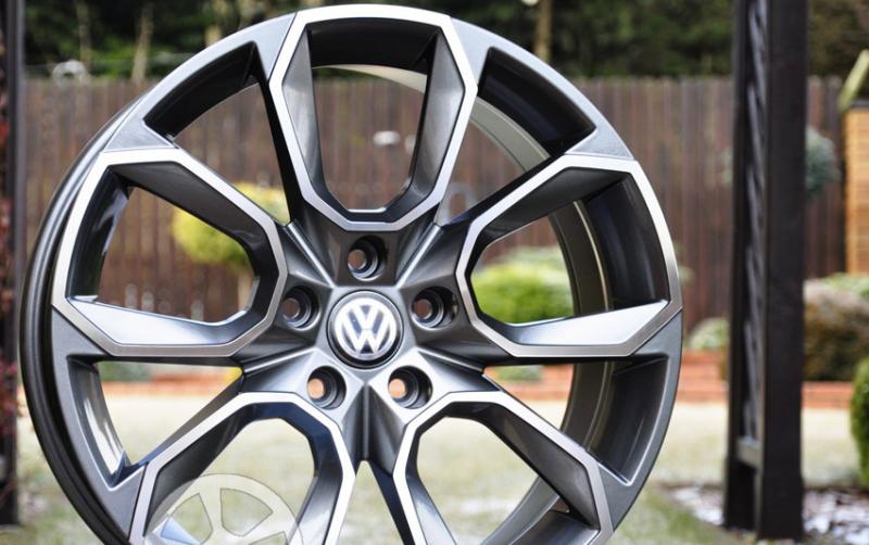 Efektní antracit-leštěné lité disky pro vozy VW AUDI ŠKODA SEAT FORD apod. Foto s logy automobilek pouze ilustrační - není součástí kol ! Dodáváno s černou středovou pokličkou. Loga VW/AUDI/ŠKODA možno dodat zvlášť za 100,- Kč/ks.
