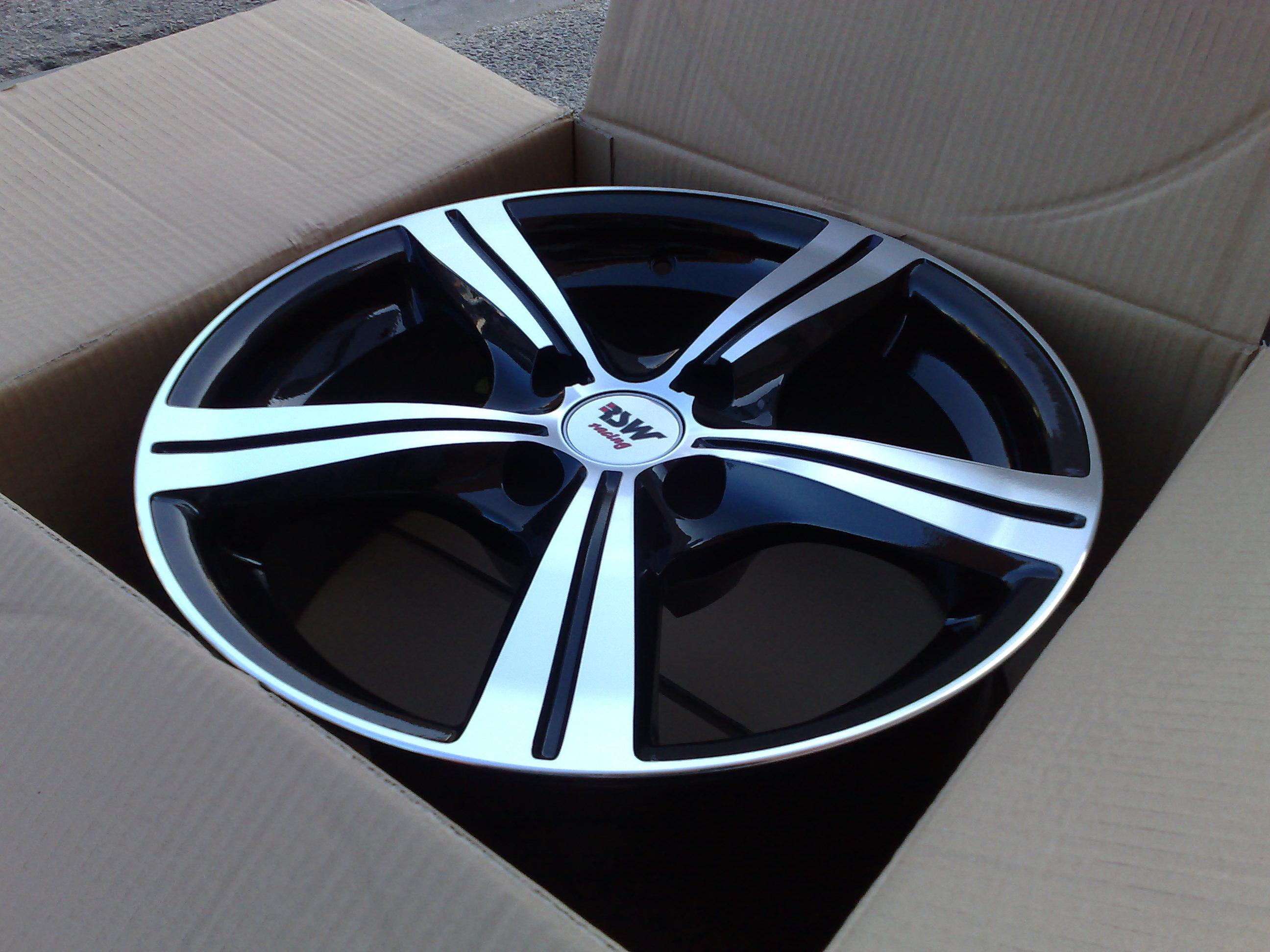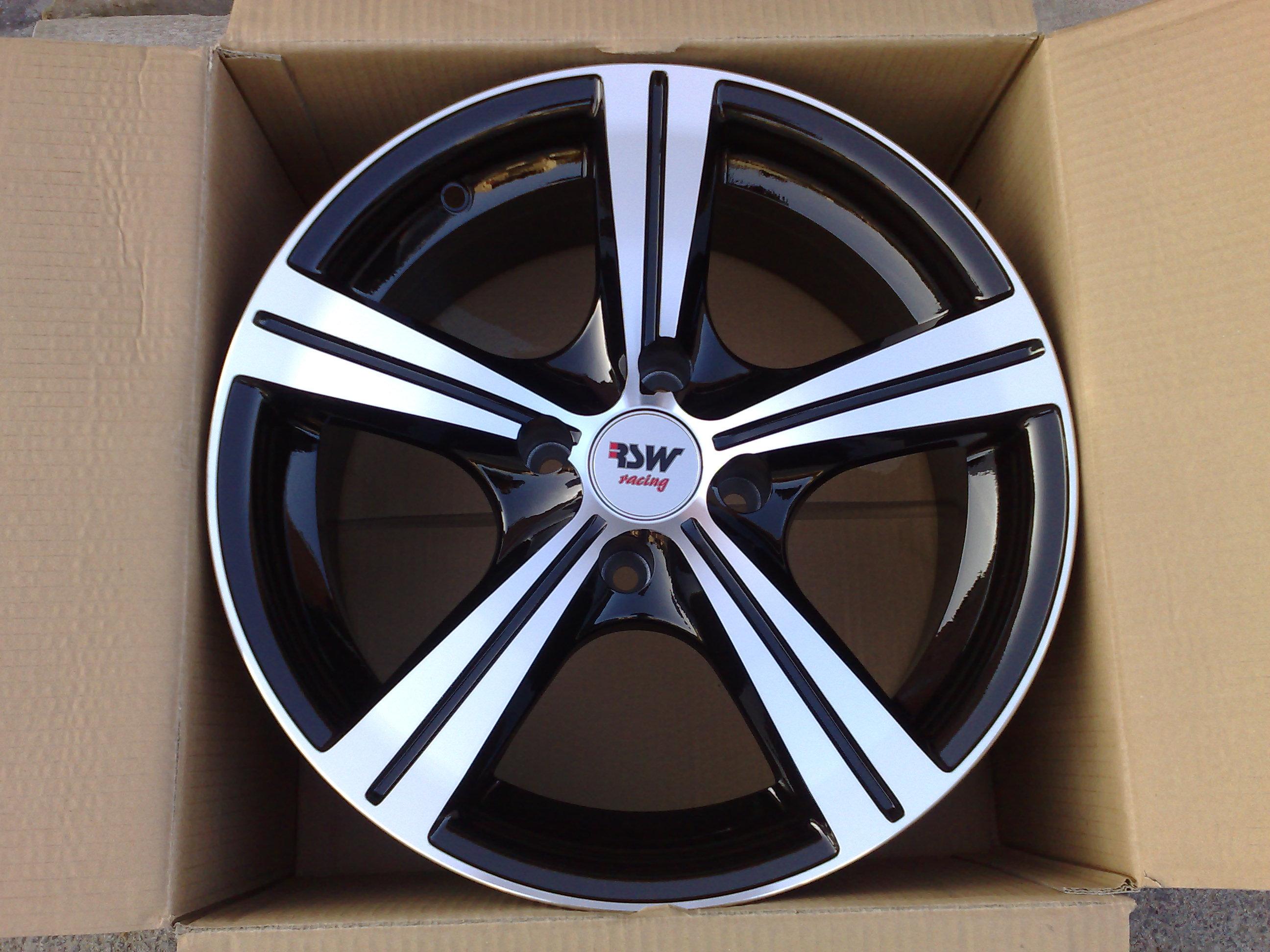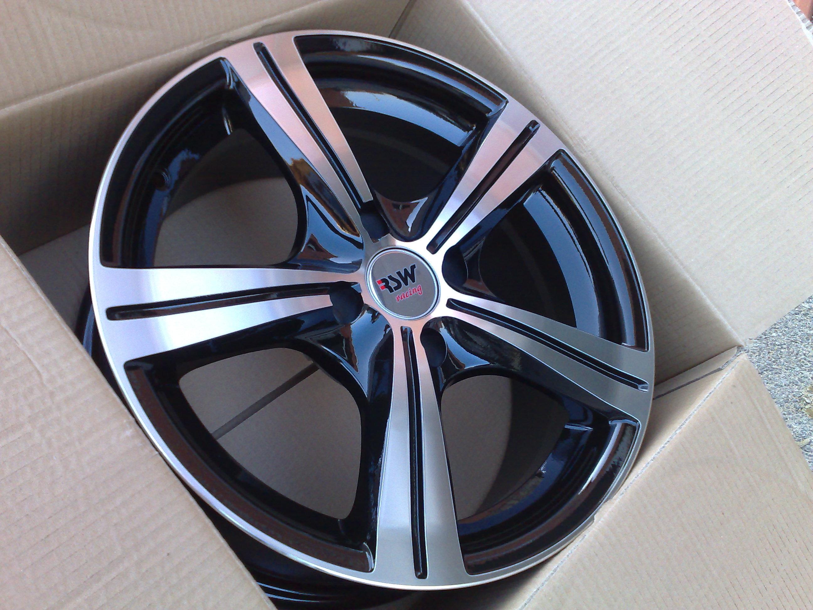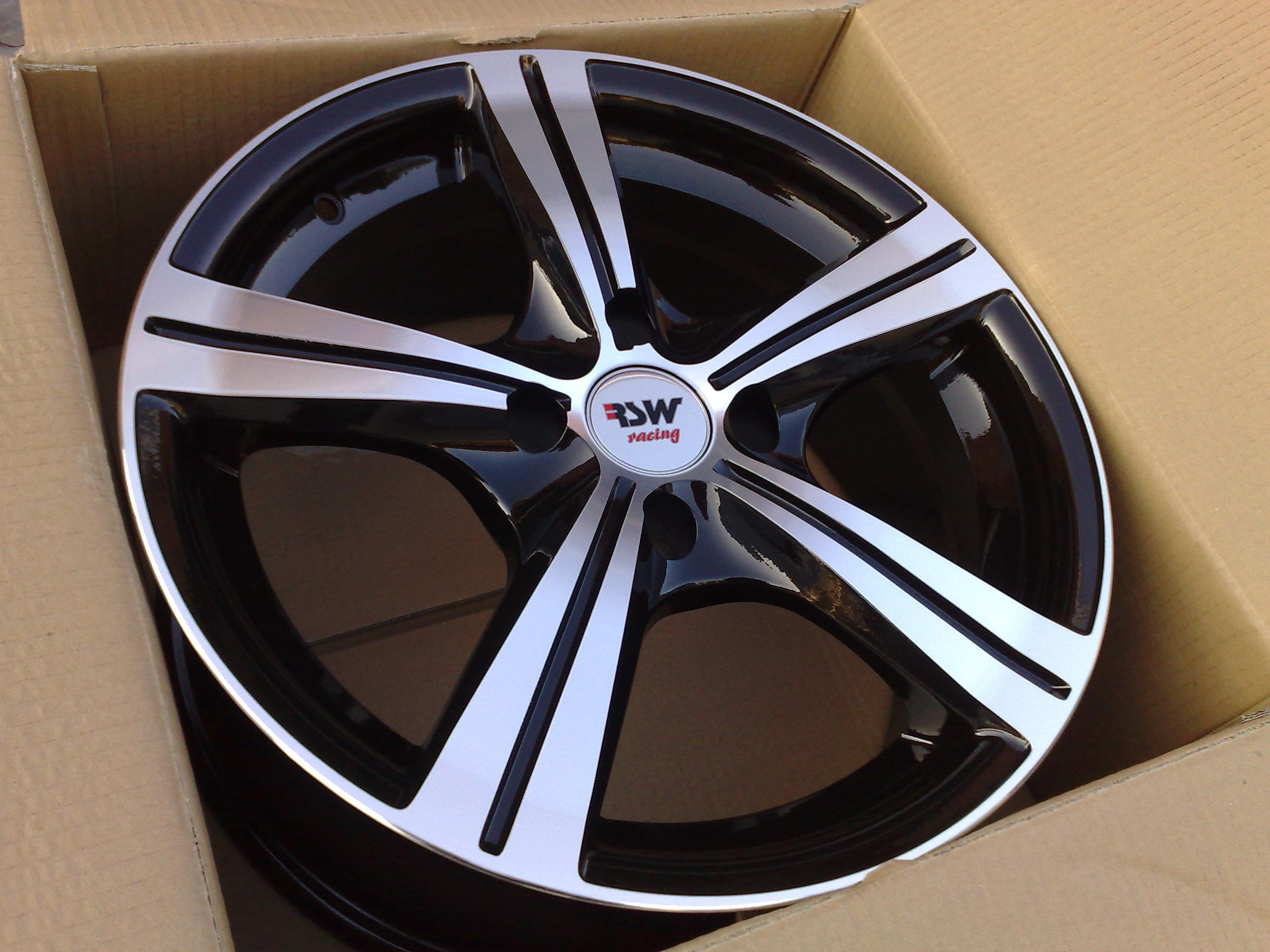 Popis: exclusivní alu kola RSW RACING, černé boky + vysoce leštěné paprsky/čelní plochy. Za příplatek 300Kč možno přidal loga Audi nebo VW
